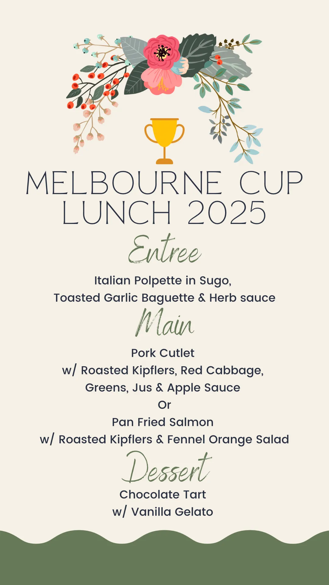 Join us for an afternoon of food, fun, and racing excitement this Melbourne Cup Day!